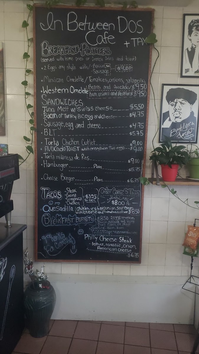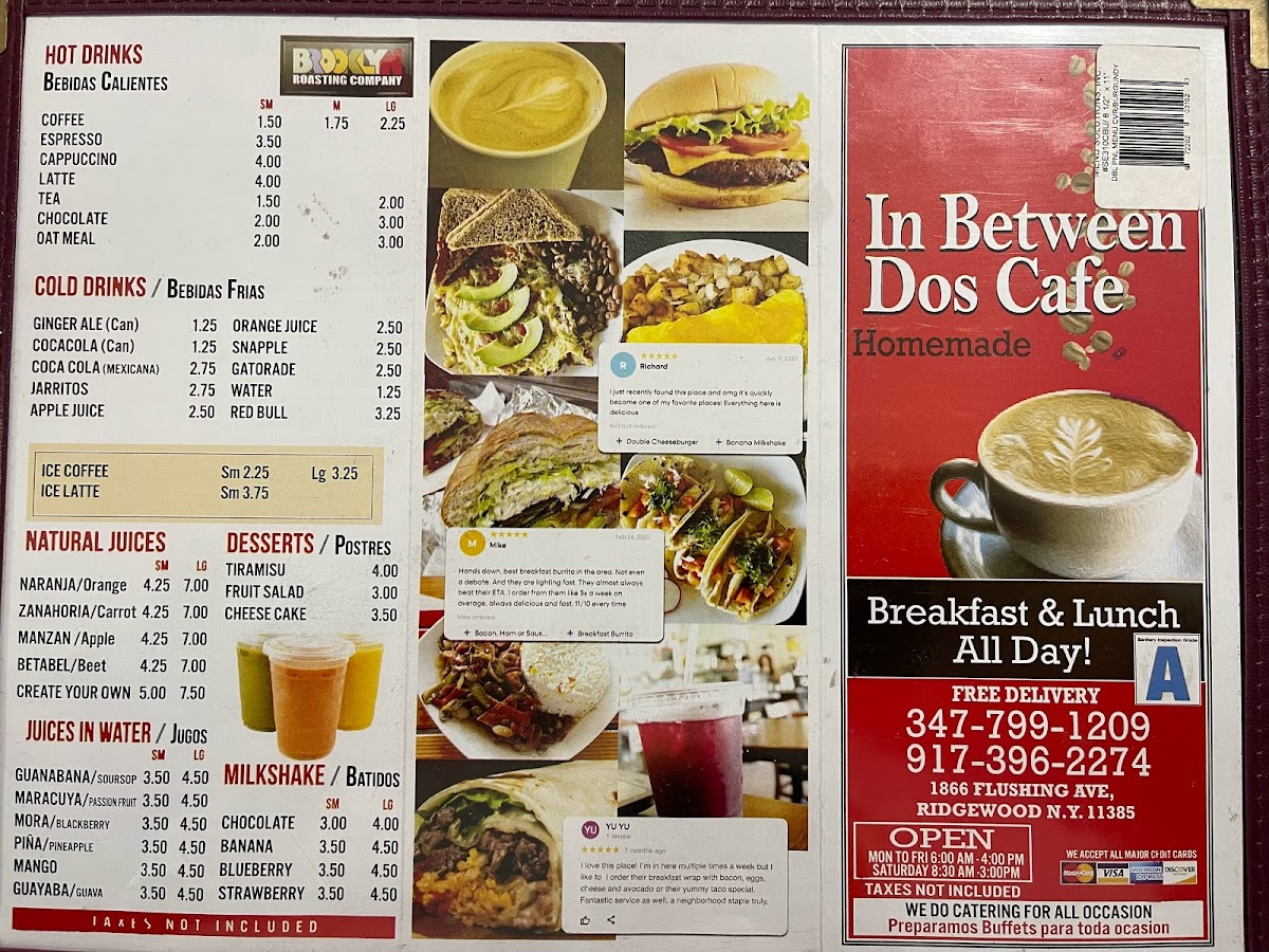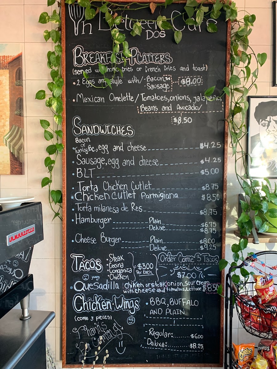 Whether you're stopping by for breakfast, lunch, or just a quick snack, In Between Dos Cafe offers something for everyone, with a wide selection of delicious meals and drinks at affordable prices.